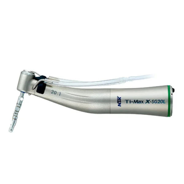 O Contra ângulo Implante NSK X-SG20L NSK é um equipamento redutor com corpo em titânio, além disso possui luz. Também conta conta com irrigação dupla, com tecnologia de resfriamento da cabeça e blindagem, facilitando o manuseio e limpeza deste equipamento odontológico.